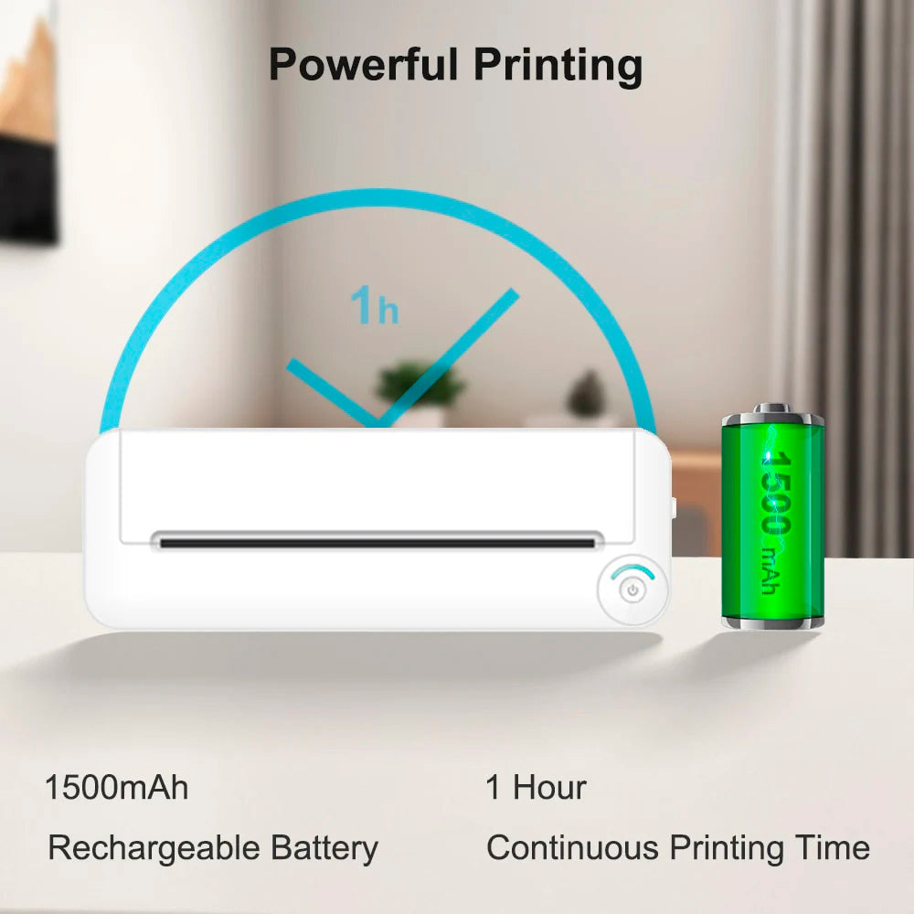 ✅ Batería recargable de 1500 mAh – imprime hasta 200 hojas por carga.