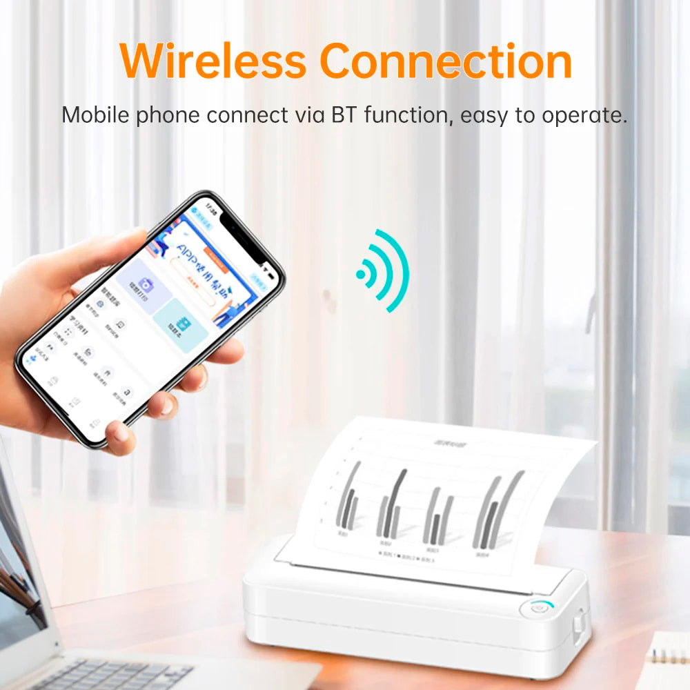 Lleva la impresión a donde quieras con esta impresora térmica portátil todo en uno. Su diseño compacto (291 × 100 × 62 mm) la convierte en la compañera ideal para viajes de negocios, la escuela o cualquier lugar donde necesites imprimir rápidamente.